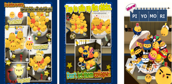 将小鸡的元素和制作美食的元素结合起来,此游戏有一定的挑战性,因为在屏幕中将会看到各种各样的小鸡,而主要的任务就是需要将这些小鸡,通过滑动屏幕的方式全部放在碗里,可能一个小小的碗无法将这么多小鸡全部放入进去,那么此时就可通过叠加的方式全部陈放,但是在堆叠时有可能会出现滑下来的情况,因此必须要锻炼自己的反应能力和动手能力。